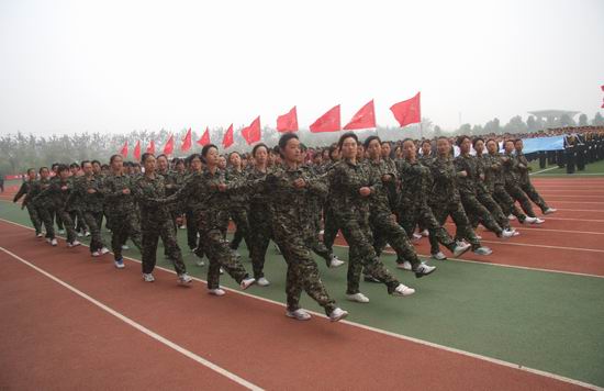 上午8点半,阅兵式在庄严的国歌声中拉开序幕。黄河水院党委书记、院长刘宪亮在潘永安大校的陪同下绕场一周,检阅了2010级新生军训方队。听到刘院长亲切的问候,同学们精神抖擞,以响亮的声音向领导问好。