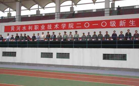 9月19日下午,我院2010级新生军训会操在祥云体育场举行。学生处副处长朱焕立、李响,驻汴某部副政委及各系分管学生工作领导共同参看了会操。大会由学生管理科科长马晓慧主持。