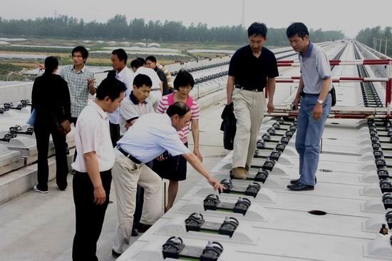 企业领导向调研组介绍京沪高铁施工情况