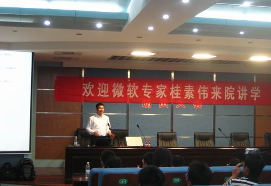 6月3日晚,微软C#方向MVP(微软全球最有价值专家)桂素伟老师应邀到我院,在学术报告厅为我院200余名师生作《Visual Studio亲密接触》的讲座。讲座由信息系工学办主任张辉主持。