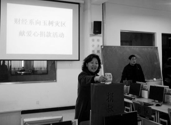地震无情人有情,大灾面前献爱心。青海玉树地震牵动着全院师生的心,我院各系部踊跃行动,组织师生向灾区奉献爱心,支援玉树人民抗震救灾和灾后重建。