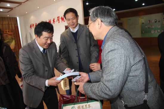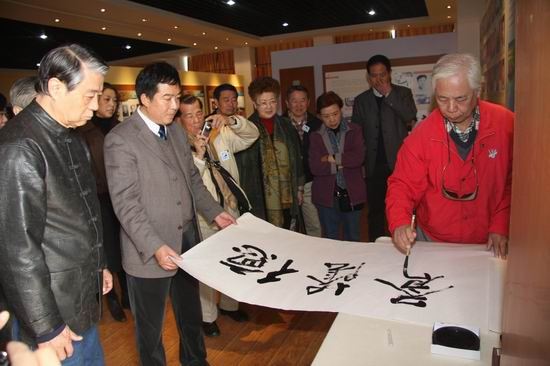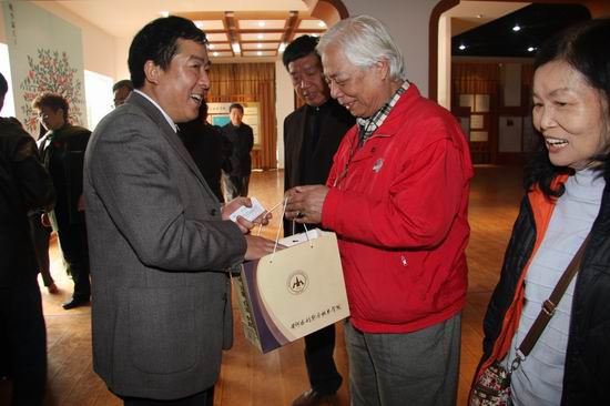 此次来访的陈泮岭之家属是在台的三个儿子陈云超、陈云庆、陈云尚,一个女儿陈德范和两个孙女。当他们在校史展览馆看到先父的照片及简介时激动万分,并合影留念。在参观校史馆过程中,他们对学院80年的发展历程及取得的成就由衷高兴,对刘书记介绍的学院的教育及发展理念十分赞赏和钦佩。他们说,借我们的眼睛让先父看看学院80多年来的成长及成就,这也是我们60多年来第一次来学院寻根的目的之所在。他们感谢学院领导的热情接待,并衷心祝愿学院的发展越来越好。之后,他们为学院题词、作画以作纪念;刘书记代表学院赠送反映学院历史和形象的资料和礼品,双方合影留念。