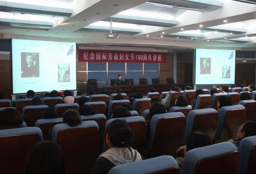 赵俊亚博士从“三八”妇女节的来历、世界各地的妇女节、妇女在世界运动中的作用、国内妇女政策、新时期妇女在家庭工作中的作用等方面重温了妇女运动的百年光辉历程。讲座回顾了女性家庭地位和社会地位的变迁,深刻剖析了女性在社会、家庭中的内涵和价值,并以此鼓励广大妇女要进一步树立“自尊、自信、自立、自强”的精神,努力追寻自己的梦想,在实现自身价值的同时创造出无愧于时代的新业绩。