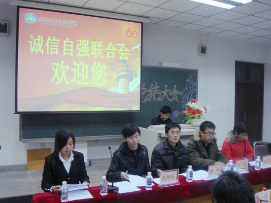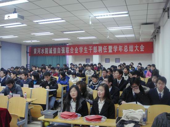 12月24日下午,院诚信自强联合会在教学楼6201室举行了第三届换届聘任大会。院学生处副处长李响、学生处王迪、倪凤琨、范锦涛等,诚信自强联合会成员及其他学生社团代表近200人参加了大会。