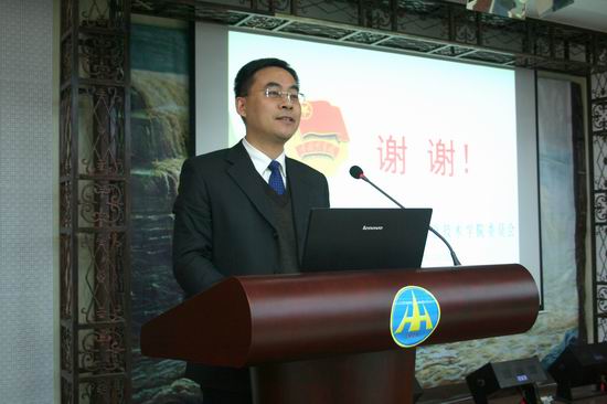 推进会上,王卫东副书记代表学院向参加会议的各位领导、兄弟院校的代表表示热烈欢迎。王书记就学院的历史、目前的发展规模、教育办学方针和目前的就业情况向各位来宾做了介绍。我院招生就业中心主任于兆国介绍了学院在促进学生就业创业方面所做的工作、取得成绩和经验。接着,河南省测绘工程院郑思明书记代表校企合作单位作了发言。