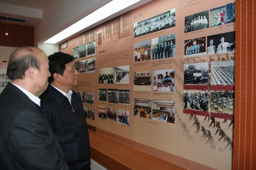 在校史展览馆,徐乘、廖义伟仔细观看了我院80年的发展历史。校史展览馆丰富的图片、翔实的内容,全面反映了我院的历史变迁,浓缩了学院80年的厚重历史。在那些反映学院沧桑巨变的老照片和珍贵史料的展台前,徐主任、廖主任驻足良久,认真聆听解说员的讲解。当看到自己当年参加学校文艺演出时的照片,徐乘高兴地跟工作人员表示,希望能够保留一份复印件。看到学院近年来在职业教育领域所取得的巨大发展成就,徐乘、廖义伟连连点头,祝愿母校明天更加辉煌。