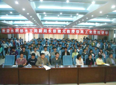此次讲座是我院80周年校庆“黄河论坛”系列活动之一,由我院水资源工程系、科研外事处、校庆办公室联合举办。讲座开始前,水资源系主任赵志贡致开幕词,对蔡建元副局长的到来表示热烈欢迎。