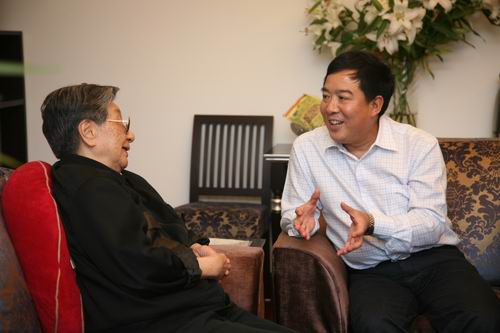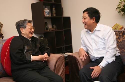 为迎接学院80周年校庆,10月16日下午,党委书记、院长刘宪亮带领财务处处长乔艳秋,党政办副主任张红梅一行3人,专程赴北京拜访了全国政协副主席、国家水利部原部长钱正英老先生。
