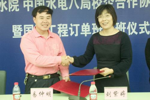 据悉,中水八局国际订单班是根据我院工学结合的办学理念,从水利水电建筑工程专业07级学生中选拔出40名学生,按照中水八局提出的人才培养目标和技能要求,校企联合制定培养计划,由我院实施培养。该订单班学生培养合格后,全部由八局接收并派往海外完成涉外工程任务。