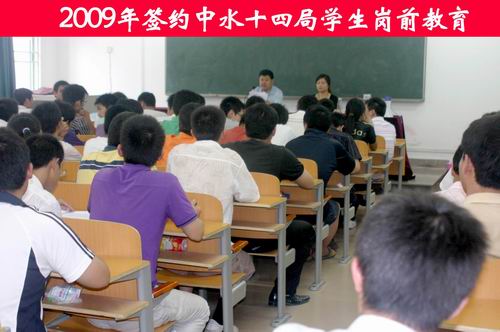 6月8日-14日,我院对2009届已签约毕业生开展了岗前教育培训,我院副院长刘紫婷出席了培训活动。此次活动由招生就业中心和各系部共同组织,对签约人数比较集中的中水系统、中铁系统、中煤系统和中化系统的1000多名毕业生分六组进行了岗前培训。
