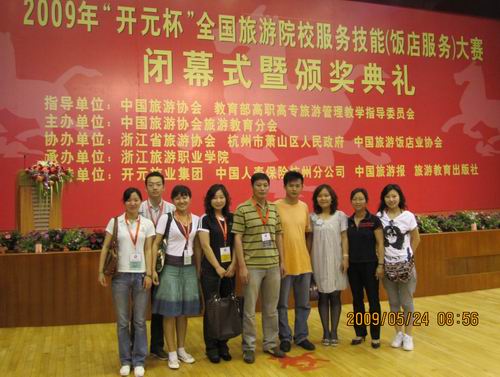 5月21日-24日,“开元杯”首届全国旅游院校服务技能大赛在杭州萧山第一世界大酒店举行,我院学生王清清、李凯、李敏分别获得中餐宴会摆台、中式客房服务“优胜奖”,我校代表队获得大赛“优秀组织奖”。