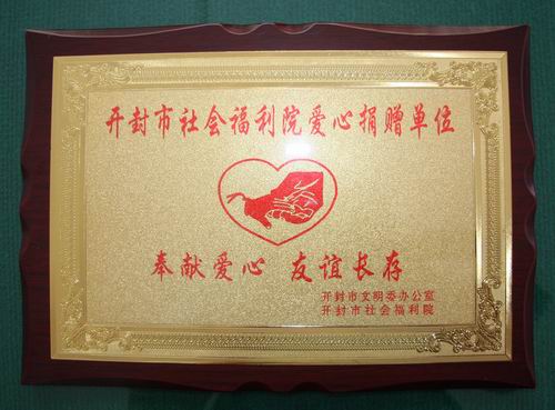 “六一”将至,以“珍爱孤残、相约六一”为主题的开封市各级文明单位向孤残儿童奉献爱心仪式在开封市福利院举行,我院为市福利院孤残儿童捐款10000元。市委常委、宣传部部长张勇,市政协副主席陈传智出席捐赠仪式并为“爱心捐赠单位”授牌。