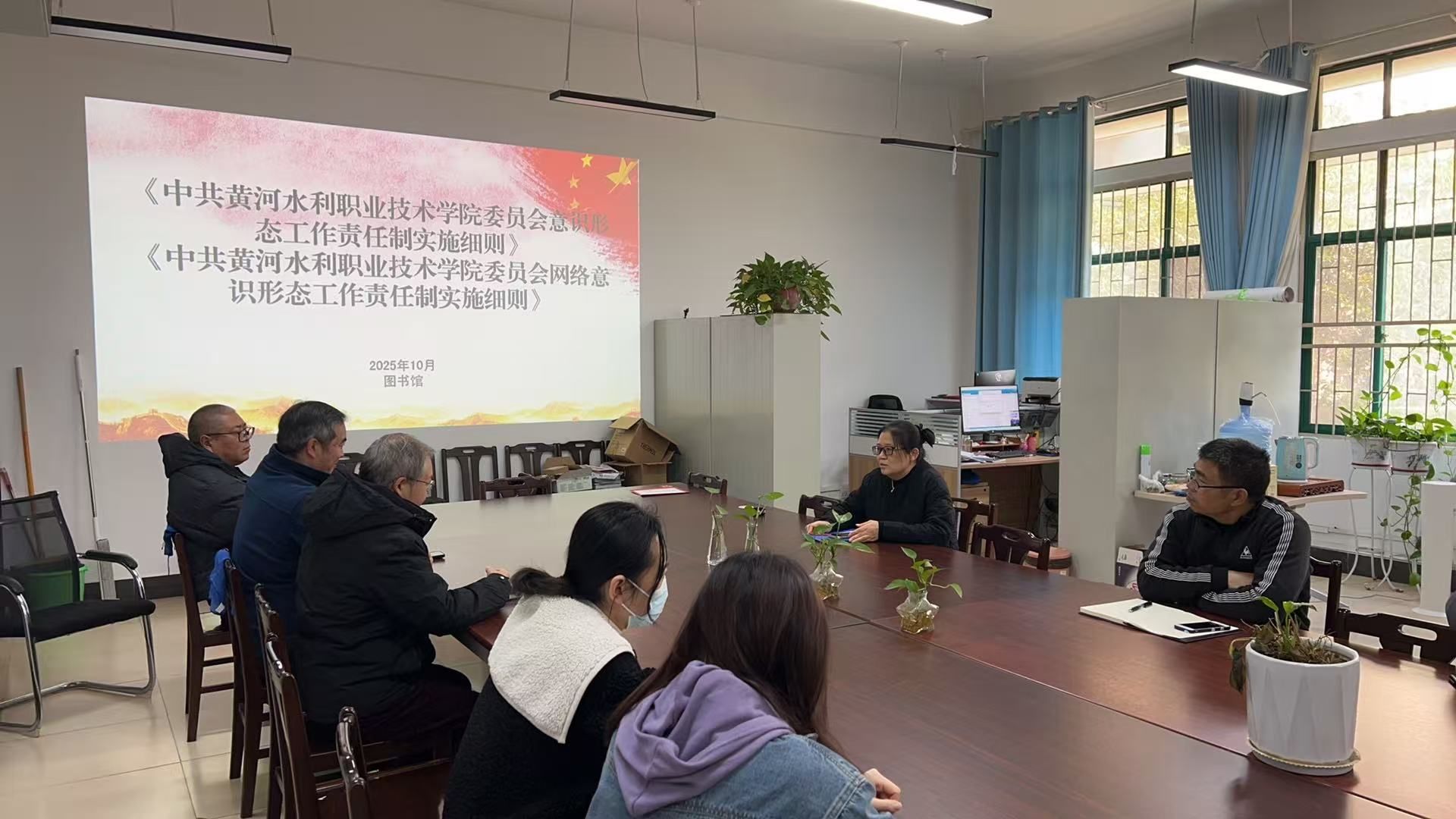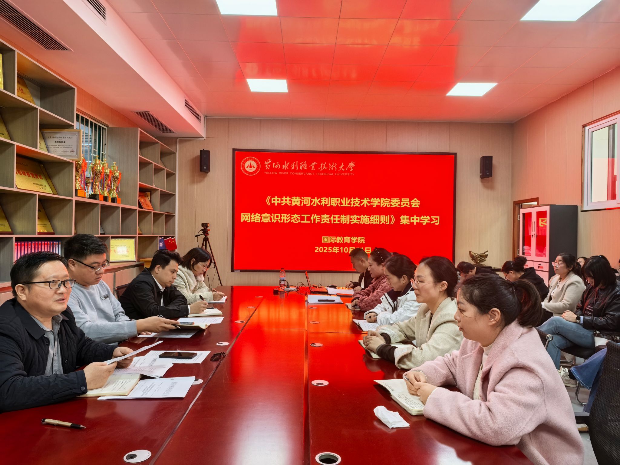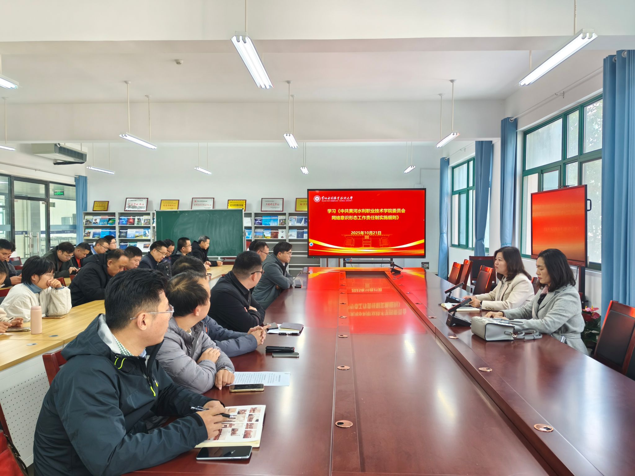 为贯彻落实《494949最快历史结果app2025年下半年政治理论学习及思想道德教育计划》学习要求,10月21日,全校各部门、各单位分别组织教职工传达学习《中共黄河水利职业技术大学委员会意识形态工作责任制实施细则》和《中共黄河水利职业技术大学委员会网络意识形态工作责任制实施细则》,引导教师切实将意识形态工作责任制贯穿立德树人全过程,切实肩负起意识形态工作的重任,为学校高质量发展营造良好的思想舆论环境。(供图:各相关部门)