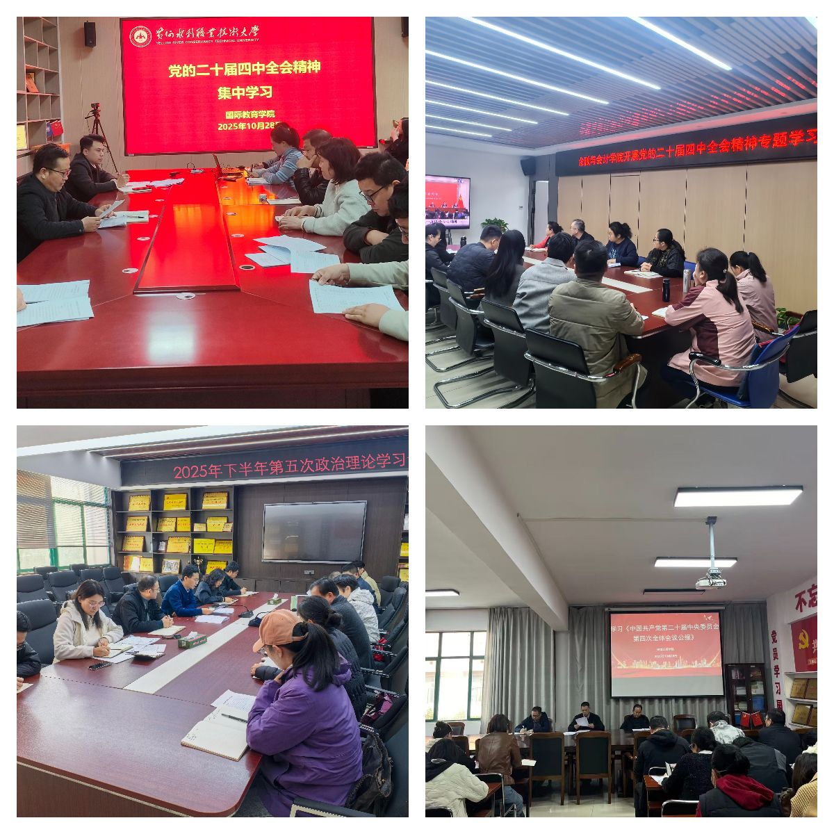 为全面学习好、宣传好、贯彻好党的二十届四中全会精神,将全会精神深度融入学校发展规划与实践推进各环节,用党的创新理论成果推动学校各项事业高质量发展,10月28日,全校各部门、各单位分别组织教职工传达学习《中共中央关于制定国民经济和社会发展第十五个五年规划的建议》《中国共产党第二十届中央委员会第四次全体会议公报》,切实将思想和行动统一到党中央的决策部署上来,在全校迅速掀起学习热潮。