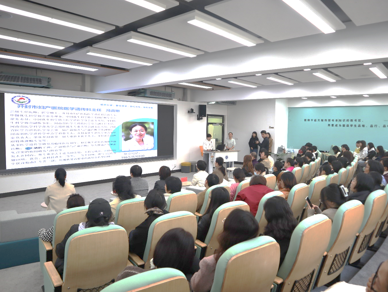 10月28日,开封市妇产医院党委书记徐迎军带领副院长王姗、王艳以及医院医学遗传科、产科、妇科、生殖医学科、乳腺外科、中医等专业的多位专家来到我校,开展健康科普和义诊活动。我校工会精心组织接待,校工会副主席、女工委主任翟志华、土木与交通工程学院党总支书记耿亚杰、机关党总支书记耿风代表学校,向市妇产医院的仁心义举表达衷心感谢。
