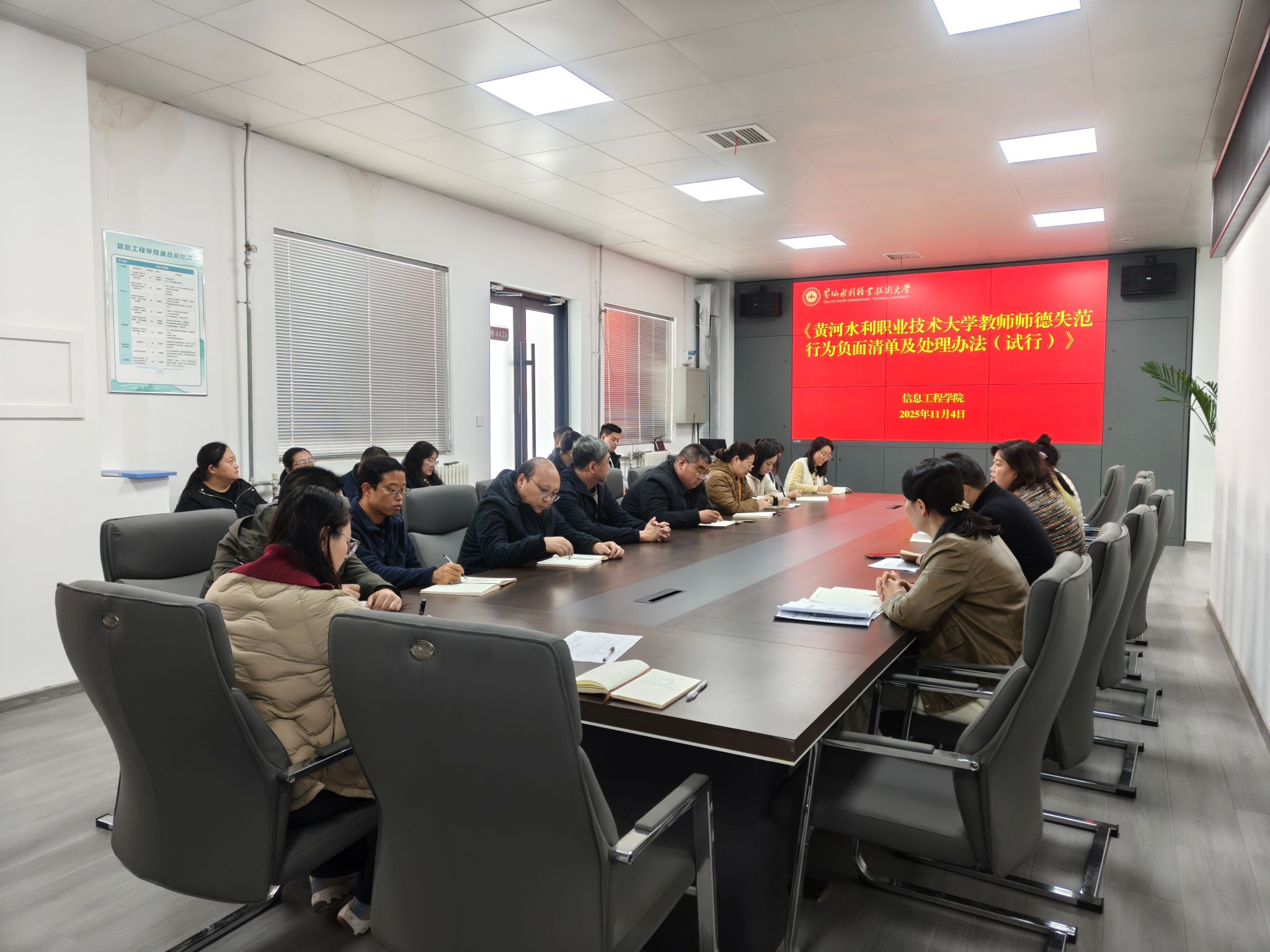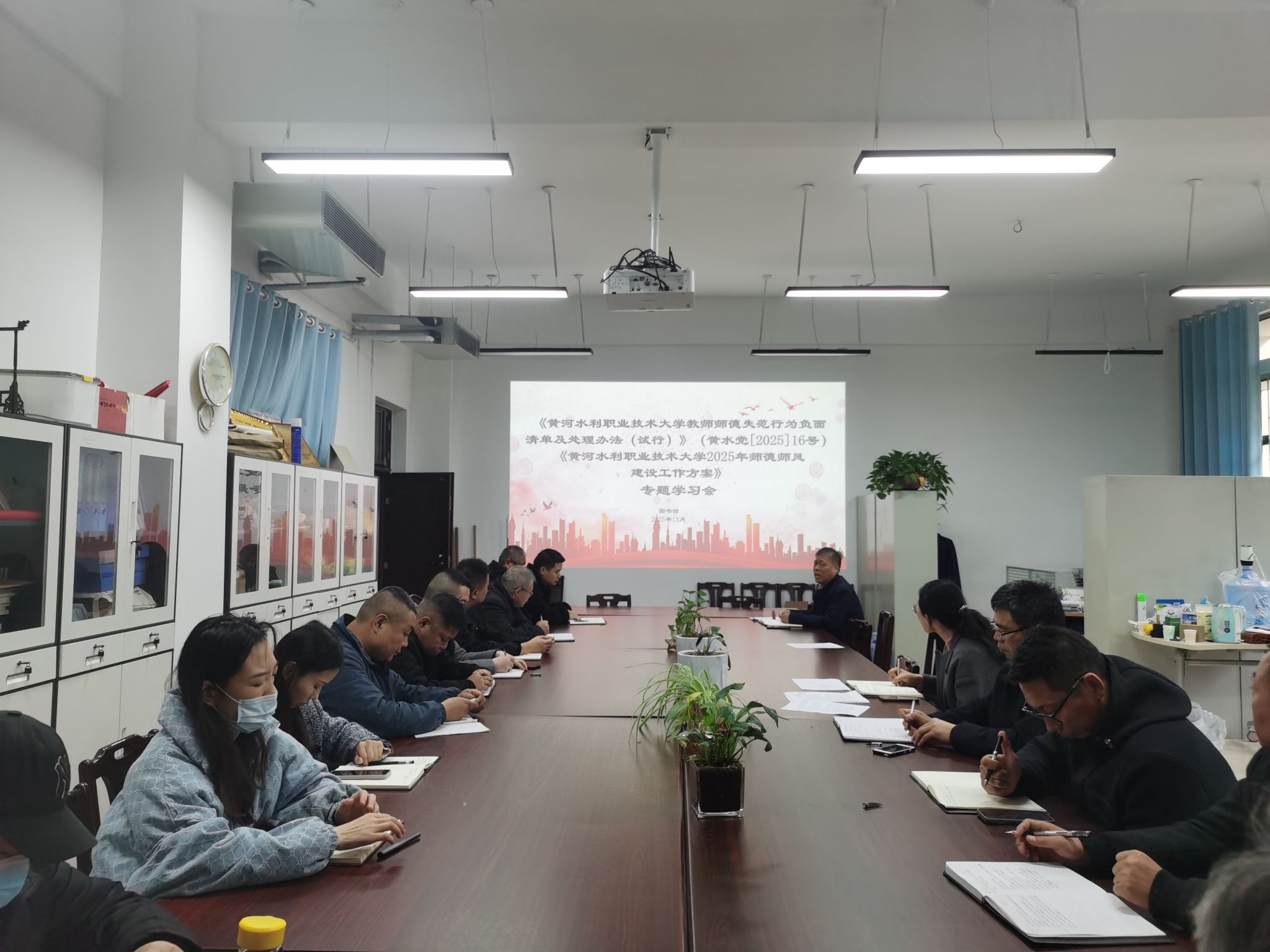 为贯彻落实《494949最快历史结果app2025年下半年政治理论学习及思想道德教育计划》学习要求,11月4日,全校各部门、各单位分别组织教职工传达学习《494949最快历史结果app教师师德失范行为负面清单及处理办法(试行)》(黄水党〔2025〕16号)和《494949最快历史结果app2025年师德师风建设工作方案》,引导全校教师准确把握师德师风建设第一标准的深刻内涵,不断提升师德师风建设水平,努力构建教风清明、校风清正的育人环境,助力学校高质量发展。(供图:各相关部门)
