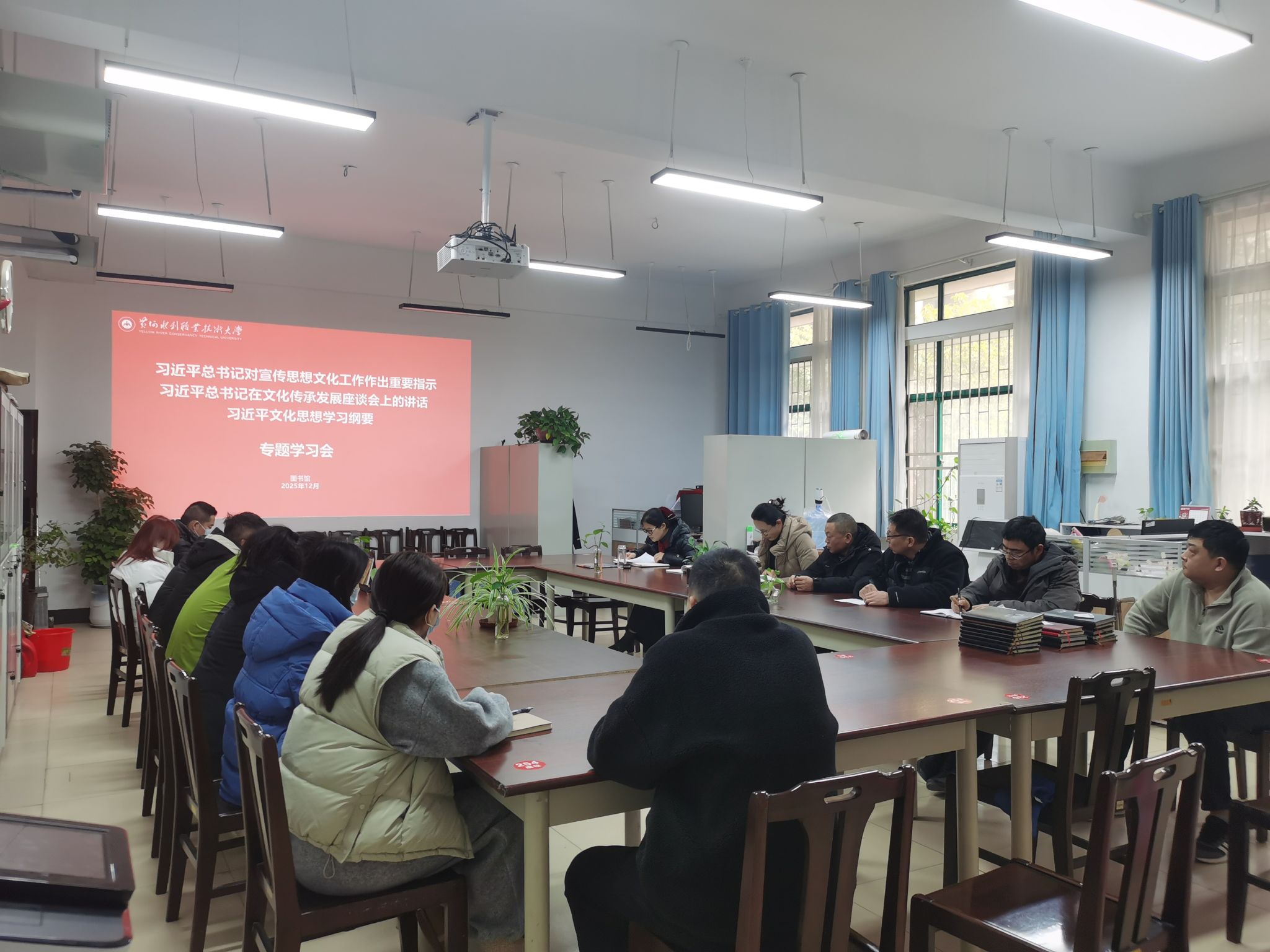 为贯彻落实《黄水2025年下半年政治理论学习及思想道德教育计划》学习要求,1230日,全校各部门、各单位分别组织教职工传达学习习近平总书记对宣传思想文化工作作出重要指示习近平总书记在文化传承发展座谈会上的讲话习近平文化思想学习纲要,引导广大师生进一步学懂弄通做实习近平新时代中国特色社会主义思想,深入学习贯彻习近平文化思想,更加深刻领悟“两个确立”的决定性意义,增强“四个意识”、坚定“四个自信”、做到“两个维护”,为以中国式现代化全面推进强国建设、民族复兴伟业而努力奋斗。(供图:各相关部门)