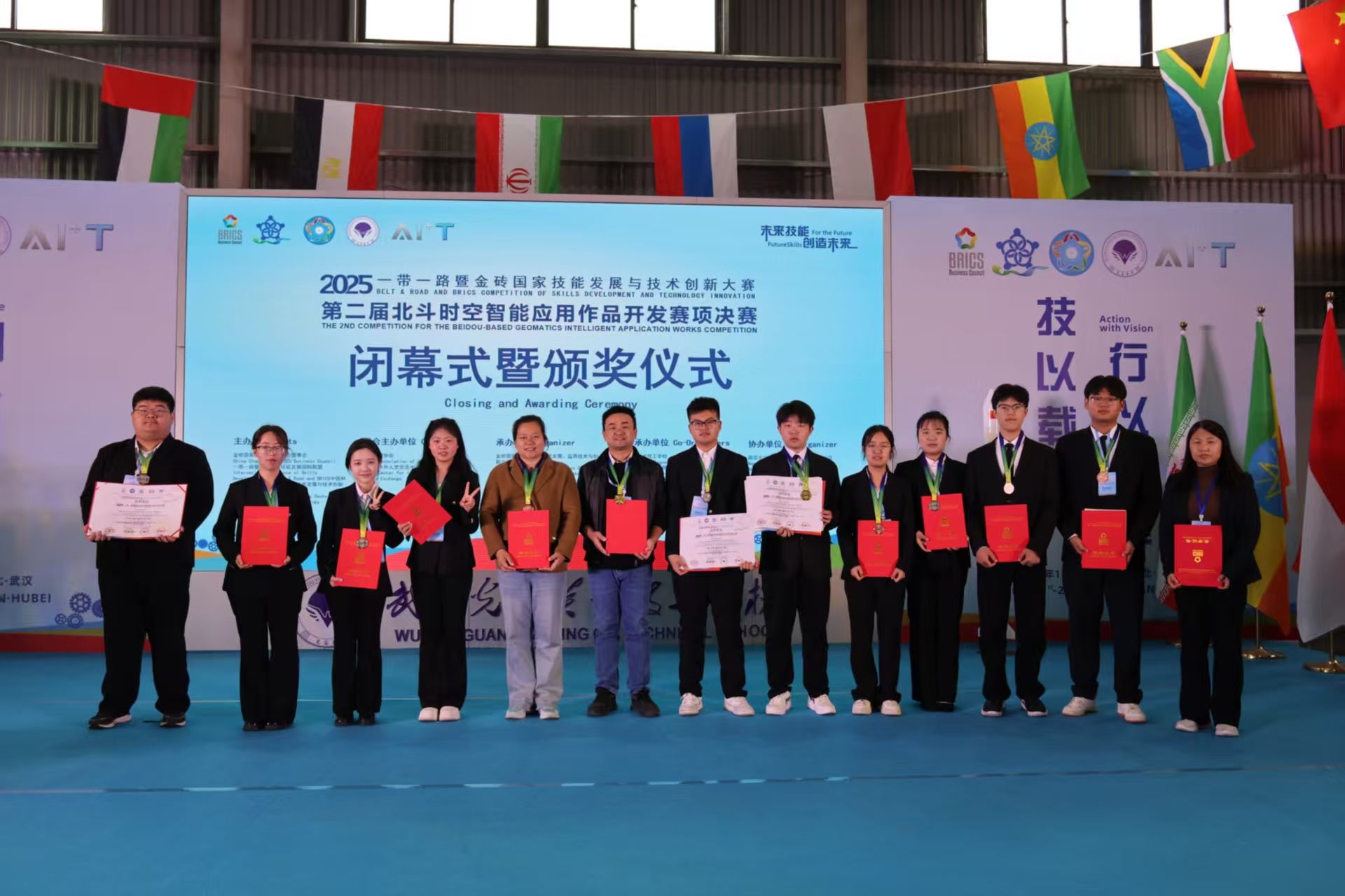 11月19日至11月23日,2025“一带一路”暨金砖国家技能发展与技术创新大赛之第二届北斗时空智能应用作品开发赛项决赛赛项在湖北武汉举行,来自全国70多支参赛队同台竞技。494949最快历史结果app选派测绘工程学院代表队分别参加了教师组和学生组比赛,经过奋勇拼搏,教师组斩获1金1铜,学生组斩获1金、2银、2铜的优异成绩,学校获得“最佳组织奖”和2个赛项的“优秀组织奖”,郭玉珍、何宽两位老师获优秀指导老师奖。