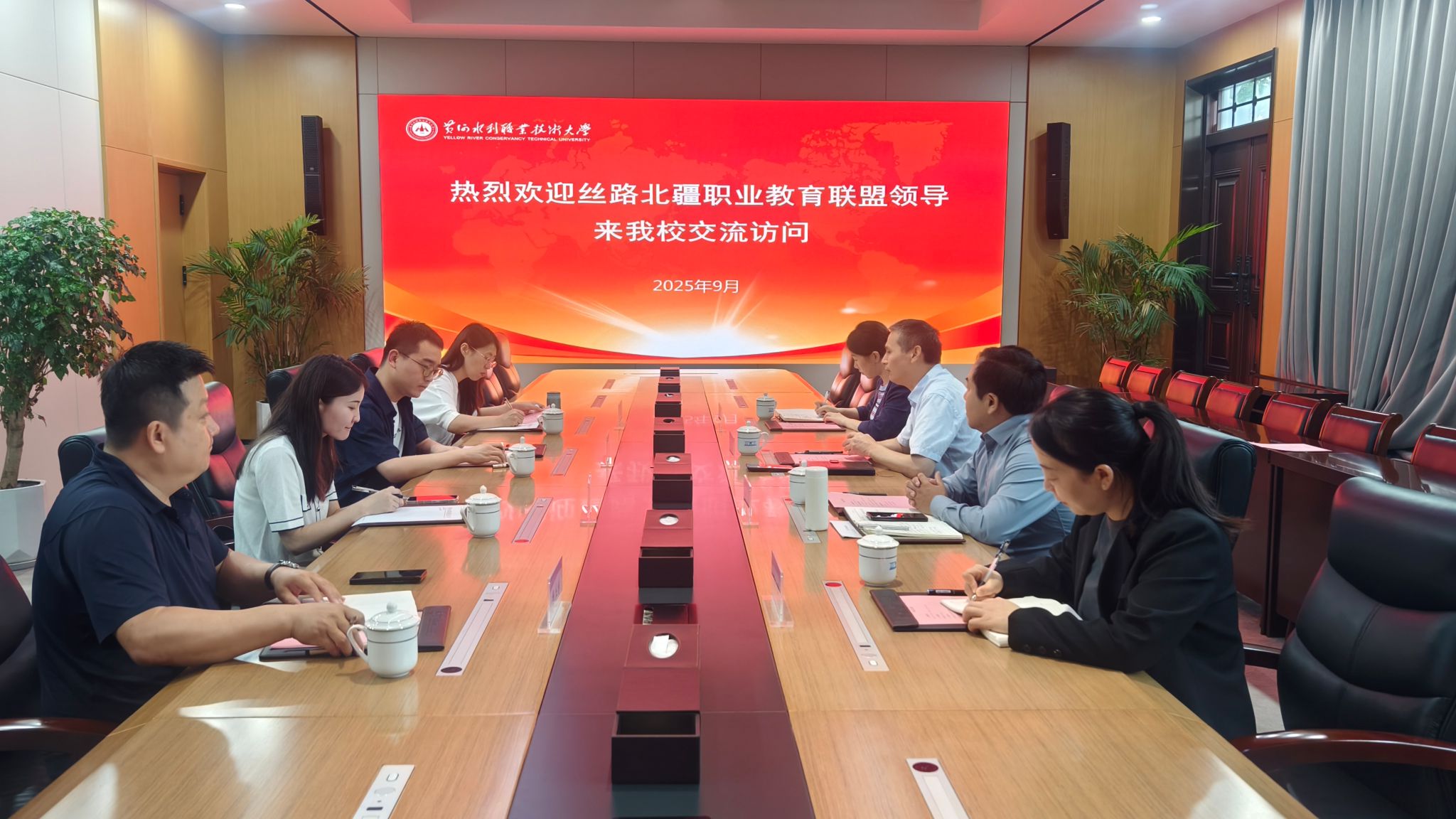 9月16日上午,内蒙古自治区教育厅合作交流处二级主任科员徐子健与丝路北疆职业教育联盟成员院校代表李洁、杨丛林、何瑜一行四人莅临我校交流访问。副校长朱焕立,对外联络与合作处负责人等热情接待了来宾。