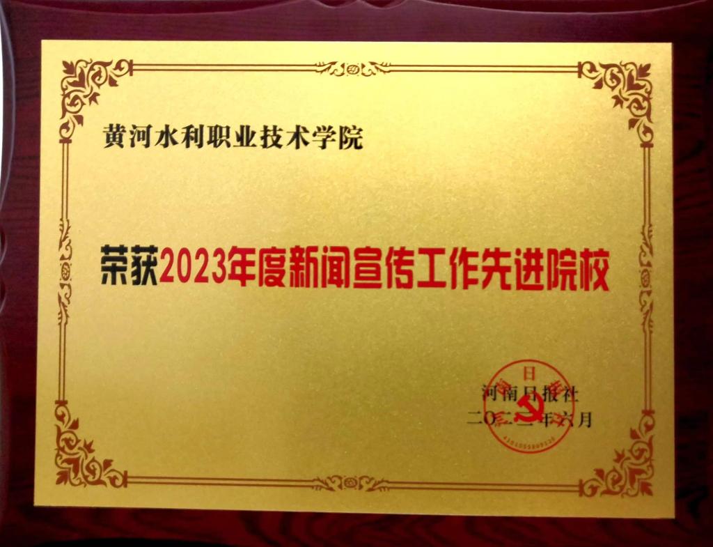 6月9日上午,由河南日报社主办的“第十四届黄河教育论坛暨2023年度黄河教育奖颁奖典礼”在郑州黄河迎宾馆会议中心举行。黄河水利职业技术学院荣获“2023年度新闻宣传工作先进院校”。
