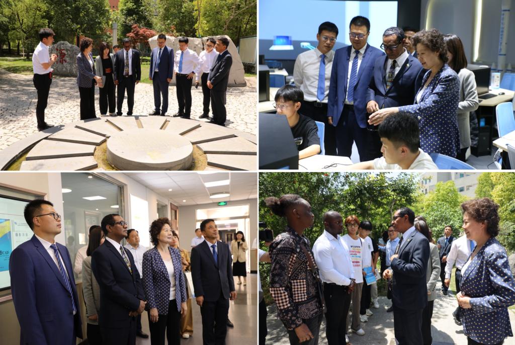 会后,周保平等校领导陪同来宾先后参观了测绘工程学院实训室、足迹景观,在交谈中详细介绍了学校的发展历程和远景规划。参观的过程中,来自非洲的留学生与费拉·德贝·伊马姆大使进行了亲切的交流,大使详细询问了留学生的学习和生活情况,并鼓励他们努力学习汉语和专业技能知识,积极传播中国文化。
