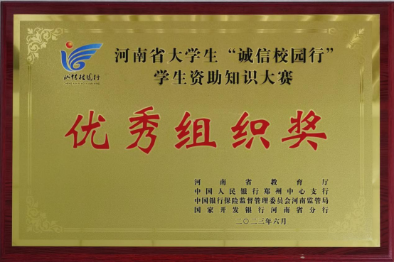 6月1日,由河南省教育厅、中国人民银行郑州中心支行、中国银监会河南省监管局、国家开发银行河南省分行主办,南阳理工学院承办的河南省大学生“诚信校园行”学生资助知识大赛总决赛在南阳理工学院落下帷幕。我校荣获本次“诚信校园行”学生资助知识大赛“优秀组织奖”。