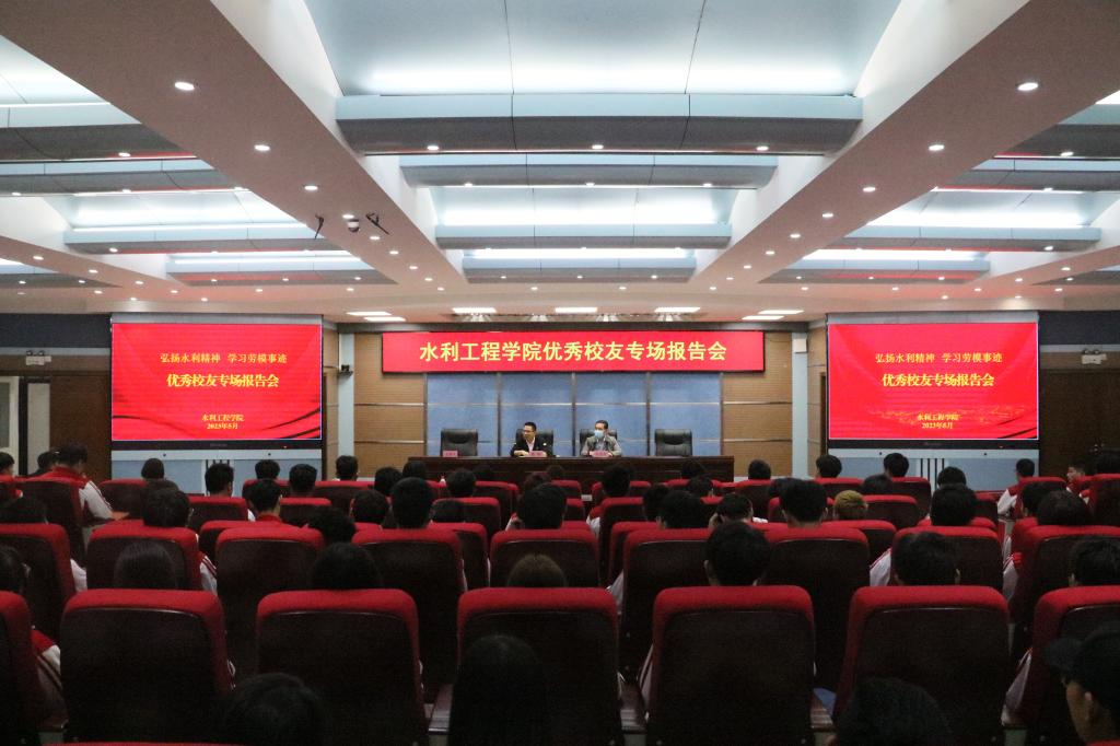 为进一步发挥优秀校友的示范引领作用,弘扬水利精神,学习劳模事迹。5月30日,学校邀请武世玉、谢思杰两名优秀校友在3号实训馆学术报告厅开展专场报告会,水利工程学院200余名师生参加报告会。