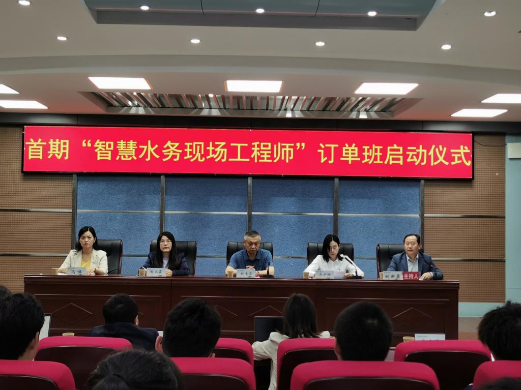 5月25日上午,黄河水利职业技术学院-北控水务集团有限公司首期“智慧水务现场工程师”订单班启动仪式在我校三号实训馆3楼学术报告厅隆重举行。学校副校长刘玉宾、北控水务集团东部大区副总经理马少娜出席仪式,学校教务处处长陶永霞、环境工程学院院长冯峰及相关领导、订单班全体学生参加本次仪式。仪式由环境工程学院副院长姚新鼎博士主持。
