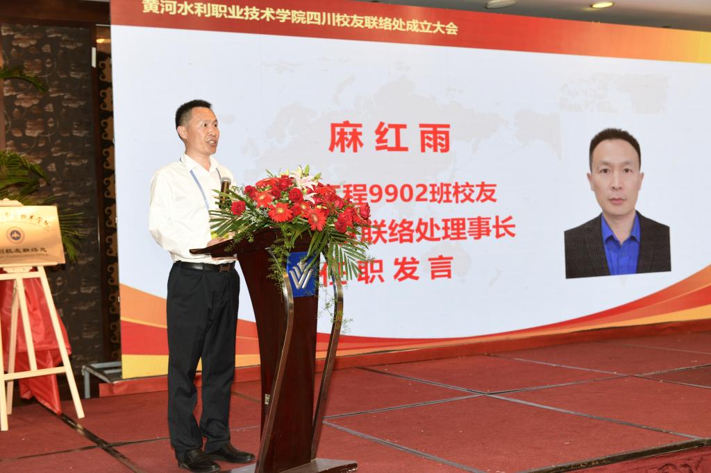 会议在庄严的国歌声中拉开序幕。四川校友联络处名誉理事长崔新红致欢迎辞,方军浩校友代表四川校友联络处筹备组做筹备工作报告。李纪宾宣读《关于同意成立黄河水利职业技术学院四川校友联络处的批复》及《关于同意黄河水利职业技术学院四川校友联络处负责人推荐名单的批复》。