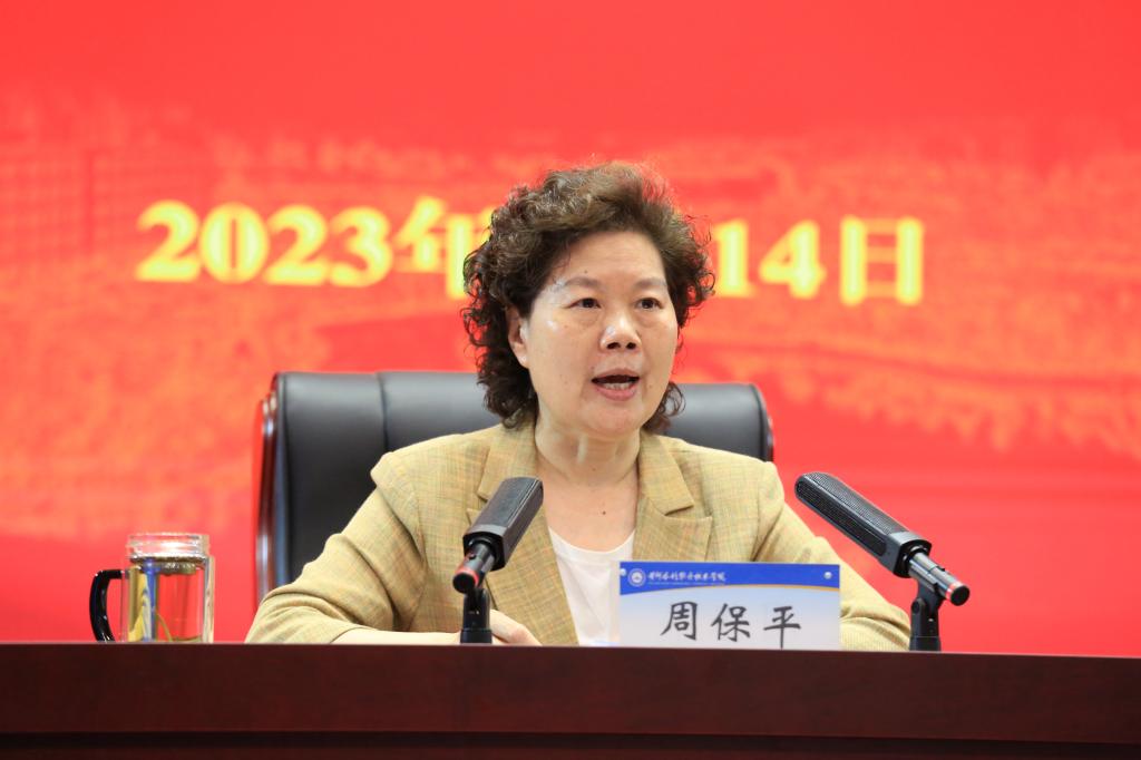 14日下午,校党委书记周保平在读书班结班式上作总结讲话。她指出,此次读书班把握住了主题教育“学思想、强党性、重实践、建新功”的总要求,全体学员能够紧紧锚定主题教育目标任务,深入学习习近平新时代中国特色社会主义思想,读书氛围浓厚,交流研讨深入,学习成效显著。通过学习,大家进一步加深了对习近平新时代中国特色社会主义思想和党的二十大精神主要内容的理解把握,为主题教育的深入开展、为把学习成果转化为推动学校高质量发展的生动实践打下了坚实的理论基础。就开展好主题教育有关工作,她提出5点要求。一要坚持把加强理论学习贯穿始终。要持续深化理论武装,坚持读原著学原文悟原理,把全面学习和重点学习结合起来,紧密结合工作职责需要,坚持干什么就重点学什么、缺什么就重点补什么,努力提高学习实效。二要坚持把深入调查研究贯穿始终。务必要明确调查研究的目的是发现和解决问题,必须力戒形式主义,真正把情况摸清楚、把症结分析透,拿出能落地、可实施的解决办法。切实把调研成果转化为解决问题、改进工作的实际举措,扎实推动各项工作部署落地生效。三要坚持把推动高质量发展贯穿始终。要紧扣学校高质量发展的各项目标,密切联系学校“双高”建设和职业本科申办的重大事项,突出问题导向、结果导向,切实解决学校发展中的难题,推动学校实现跨越式发展。四要坚持把检视整改问题贯穿始终。要发扬刀刃向内的自我革命精神,坚持分类整改与集中整治相结合,在不断解决一个个具体问题中推动主题育走深走实,以问题的有效解决带动学校事业更好更快发展。五要坚持把建章立制贯穿始终。各职能部门要对现有规章制度进行全面梳理,统筹做好“立改废”“精装修”工作,提升制度执行力和治理效能。