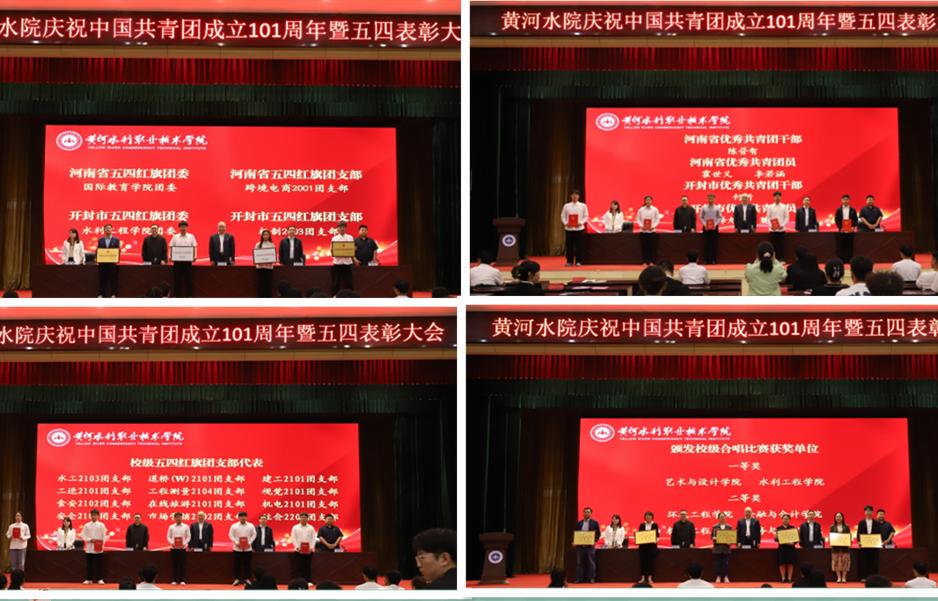 团委书记范龙宣读了2022年度获得全省、全市及全校“两红两优”集体及人员名单。团委副书记郝黎闻宣读了“唱响青春新征程”合唱比赛获奖单位名单。与会领导依次向受表彰的“五四红旗团委”“五四红旗团支部”“优秀共青团员”“优秀共青团干部”及合唱比赛获奖单位等颁发了奖牌和荣誉证书。河南省五四红旗团委、国际教育学院团委书记曹睿就学院团委如何引领青年思想、服务青年成长成才等进行了交流发言。河南省优秀共青团员、水利工程学院李若涵同学结合自身实际,分享了自己如何立志奋发学习,展现责任担当的成长经历。