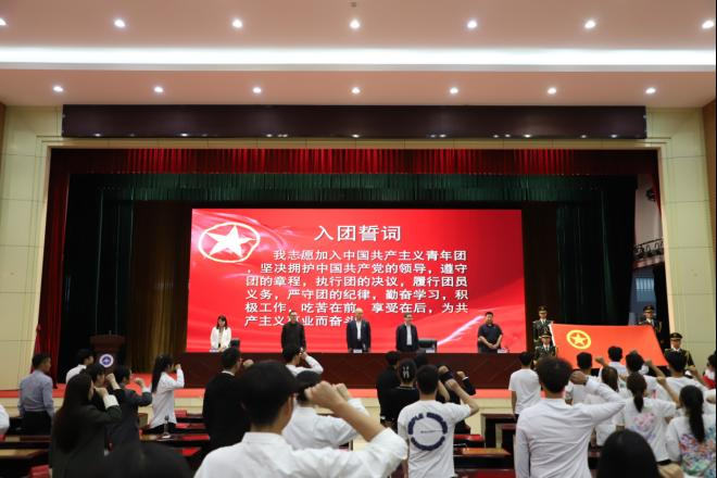 大会进行了新团员入团仪式,与会领导向新发展团员代表颁发团员证、团章并佩戴团徽,新团员进行入团宣誓,老团员重温入团誓词。