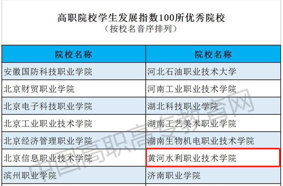 近日,中国教育科学研究院、全国职业高等院校校长联席会议编制的《2022中国职业教育质量年度报告》由高等教育出版社出版并正式发布。学校以优异成绩入选“高职院校学生发展指数优秀院校”(全国共100所)、“高职院校资源建设优势学校”(全国共60所)、“高职院校教师发展指数优秀院校”(全国共100所),标志着学校综合办学实力、社会影响力和美誉度的显著提升,是“双高”建设取得的又一项重要成果。