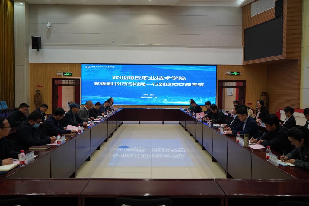 闫树秀对我校的热情接待表示感谢,对我校文明校园创建、基层党建、文化建设等领域取得的成绩表示赞赏,并简要介绍了商丘职业技术学院的相关工作情况。