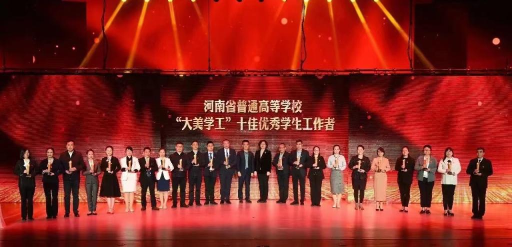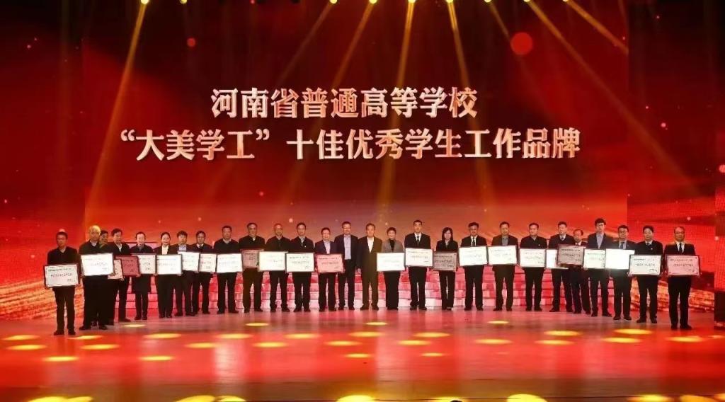 省委常委、洛阳市委书记江凌,省委教育工委副书记、省教育厅党组书记、省教育厅厅长毛杰等与会领导为获得全省普通高等学校“大美学工”学生工作先进单位、优秀品牌、先进个人、优秀成果的组织和个人颁奖。我校“‘1+N’全栈式个共融合网络育人体系”荣获“十佳优秀学生工作品牌”称号;胡晓慧老师荣获“大美学工”十佳优秀学生工作者称号。