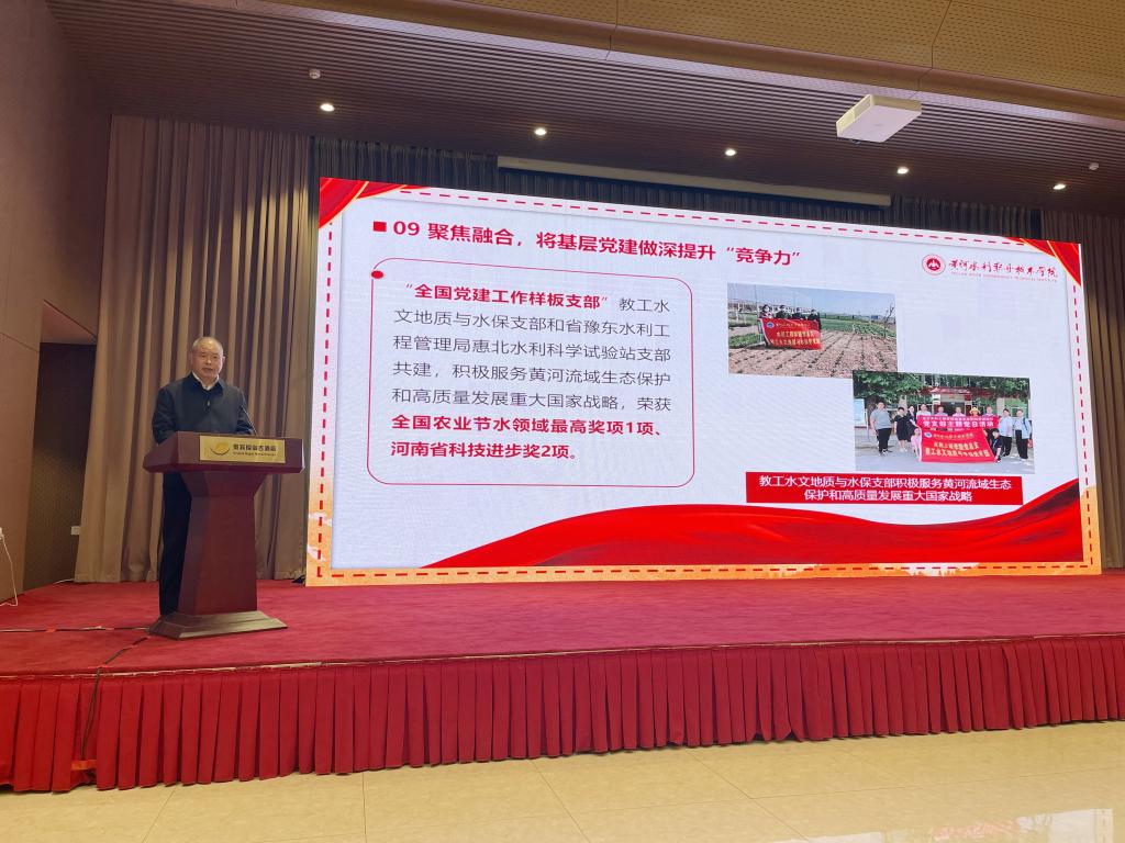 杨士恒以《创新“十聚焦十提升”基层党建工作法 聚力赋能推动学校高质量发展》为题,围绕我校“十聚焦十提升”工作法,介绍了学校在推动基层党组织工作质量全面创优全面提升的举措和成效。