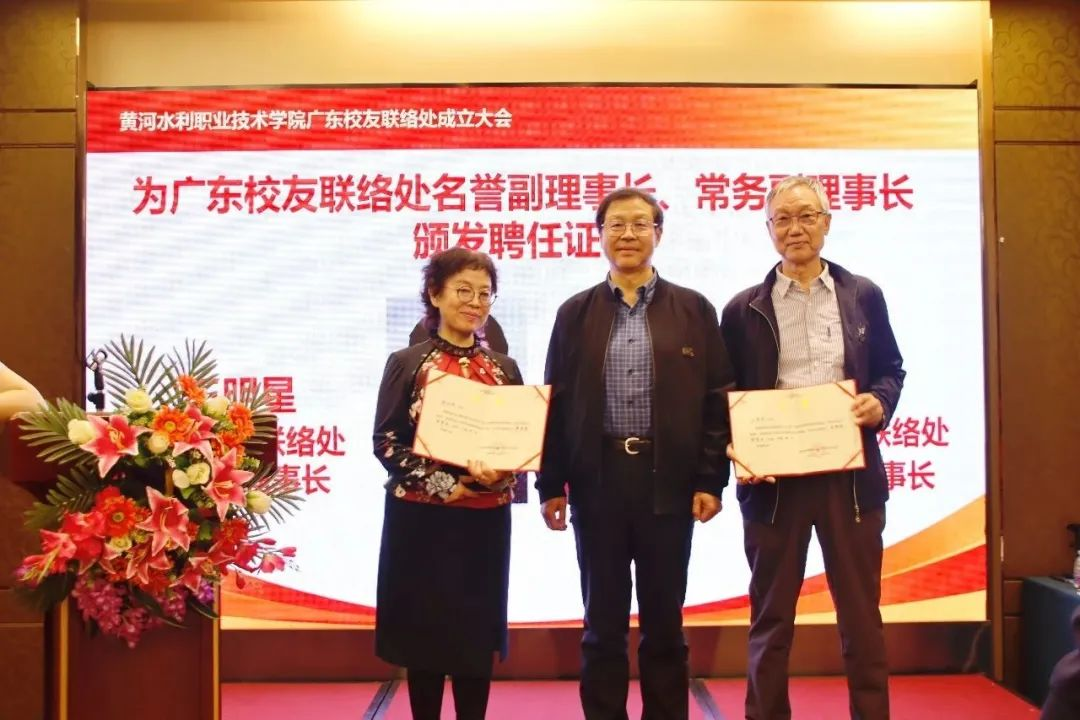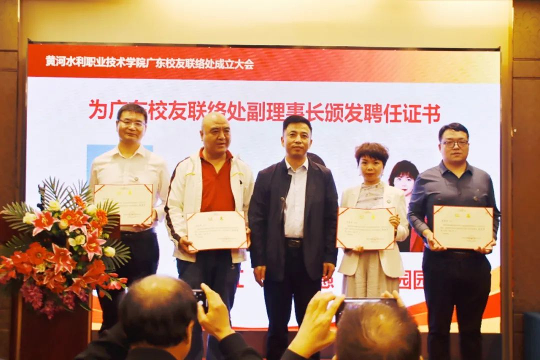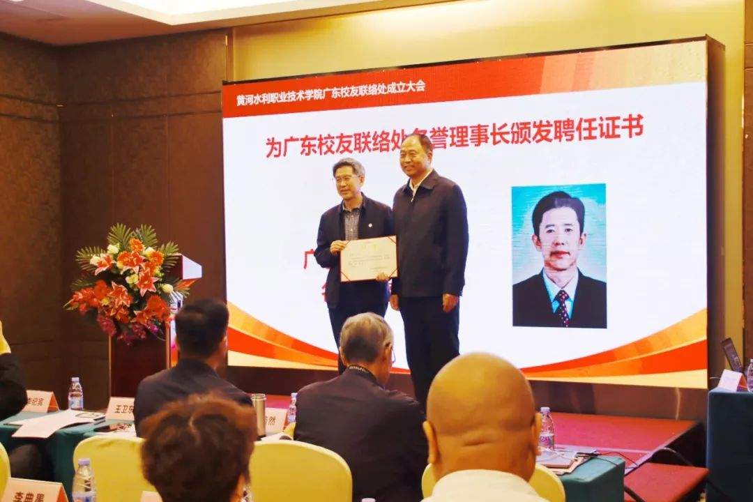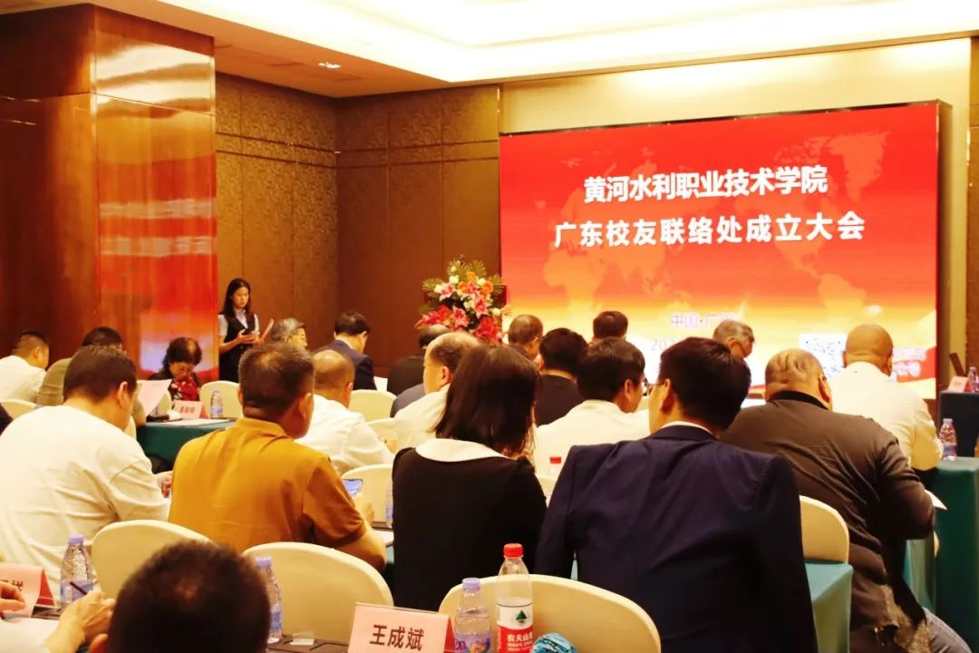 成立大会在母校宣传片中拉开序幕。会上,广东校友联络处筹备组组长王付德汇报了筹备工作及广东校友基本情况。李纪宾宣读《关于同意成立黄河水利职业技术学院广东校友联络处的批复》及《关于同意黄河水利职业技术学院广东校友联络处负责人推荐名单的批复》。