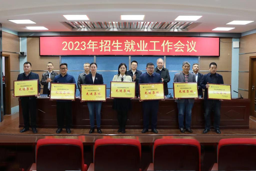 杨士恒宣读了《关于表彰2022年招生工作绩效考核先进集体和先进个人的决定》《关于表彰2022年毕业生就业工作绩效考核先进集体和先进个人的决定》。与会校领导为2022年招生就业工作先进集体和优秀个人代表颁奖。