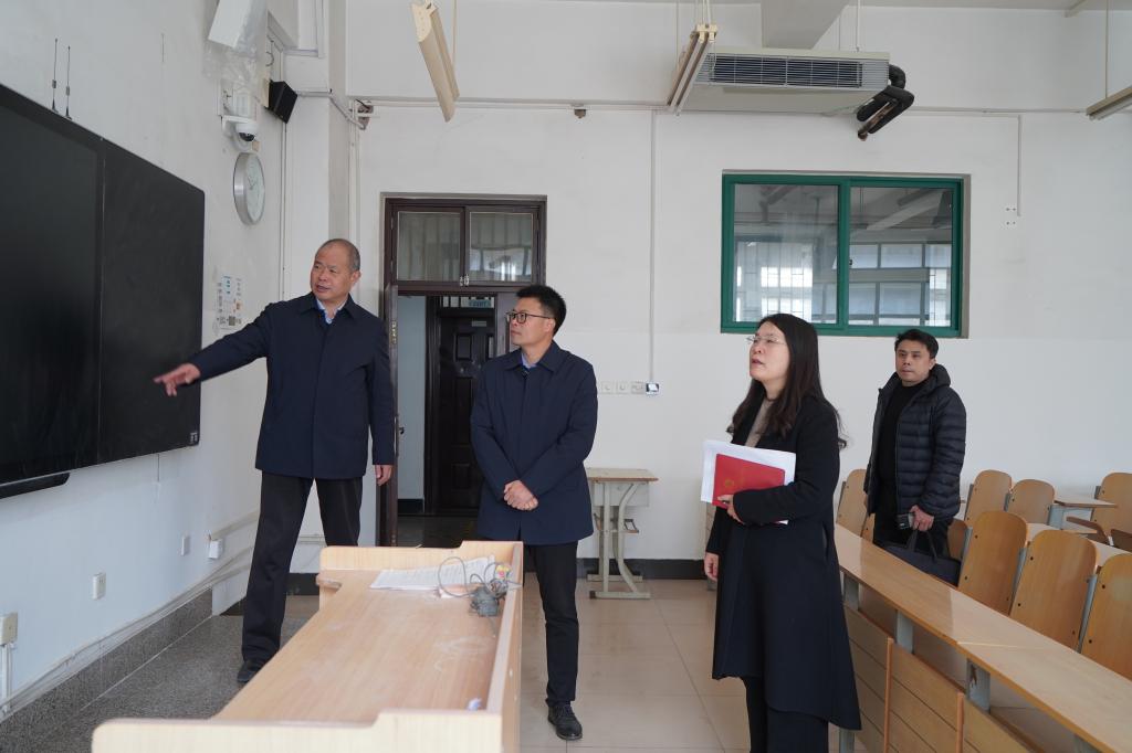 为确保新学期学生返校工作顺利进行,2月17日上午,党委副书记、校长胡昊带队,党委副书记、工会主席杨士恒,副校长刘玉宾一行先后深入教学楼、物资储备点、健康驿站、学生宿舍、实训场馆及学生餐厅等重点场所,检查指导学生返校准备工作。