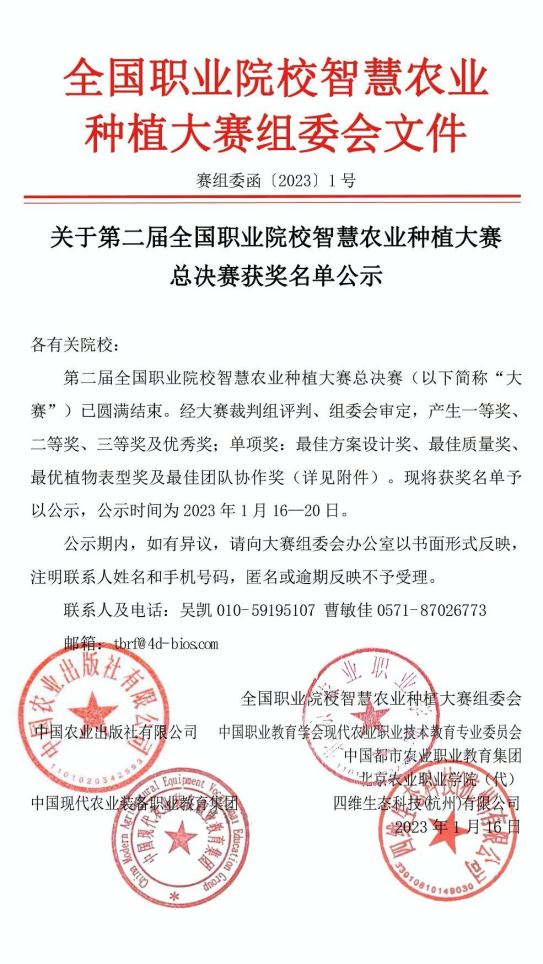 1月20日,从全国职业院校智慧农业种植大赛组委会获息,我校环境工程学院代表队喜获第二届全国职业院校智慧农业种植大赛二等奖第一名。