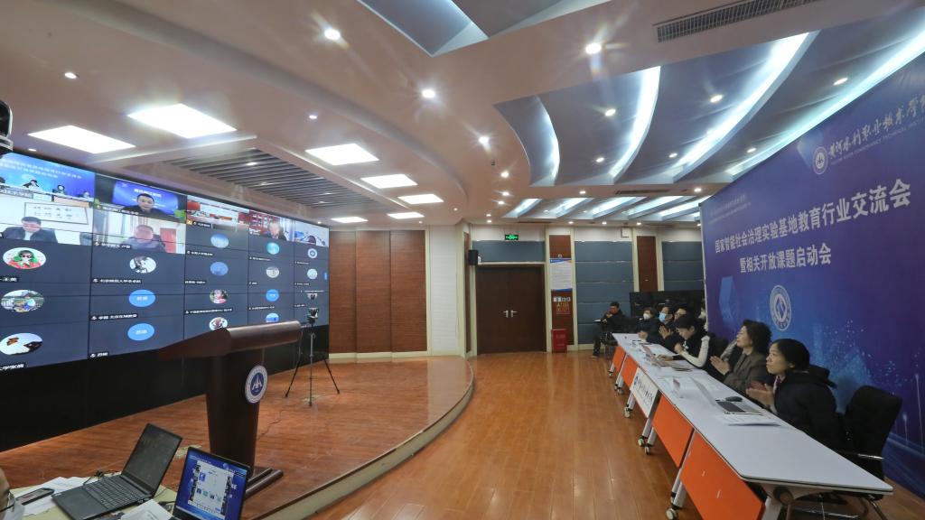 12月30日下午,国家智能社会治理实验基地教育行业交流会暨相关开放课题启动会在我校举行,教育部教育信息化战略研究基地(北京)副主任童莉莉、北京师范大学职成所副教授庄榕霞莅临会议现场,学校党委书记周保平,党委副书记、校长胡昊,副校长刘守义及相关部门和院系负责人参会了会议,会议由胡昊主持。教育部科学技术与信息化司教育信息化与网络安全处处长任昌山,清华大学公共管理学院教授、清华大学智能社会治理研究院院长苏竣,北京邮电大学党委常委、副校长任雄飞,中国教育科学研究院国际与比较教育研究所所长王素,北京师范大学教授、教育部教育信息化战略研究基地(北京)主任黄荣怀等领导和特聘专家与19家教育特色基地负责人及代表共同通过线上形式参加了本次会议。