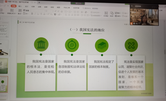 为了使活动扎实深入学生心中,马克思主义学院德育教研室通过举办12月4日国家宪法日《宪法》知识讲座、日常教学宣讲党的二十大精神和宪法课、利用课堂带领学生诵读宪法、依托学生社团开展形式多样的学习宪法、学习党的二十大精神等活动,对学生开展宪法宣传教育,宣传宪法所确立的国家根本制度、根本任务、基本原则、活动准则,大力弘扬宪法精神。此次宪法知识宣传教育活动赢得了学生们的积极响应,纷纷留存学习党的二十大精神和宪法课的照片和视频,并撰写学习心得。