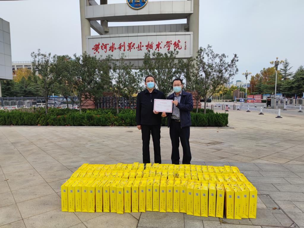 11月13日,我校教师殷建国代表开封市久久菊业开发有限公司向奋斗在抗疫一线的教师和工作人员捐赠120提菊花茶,助力学校疫情防控工作。