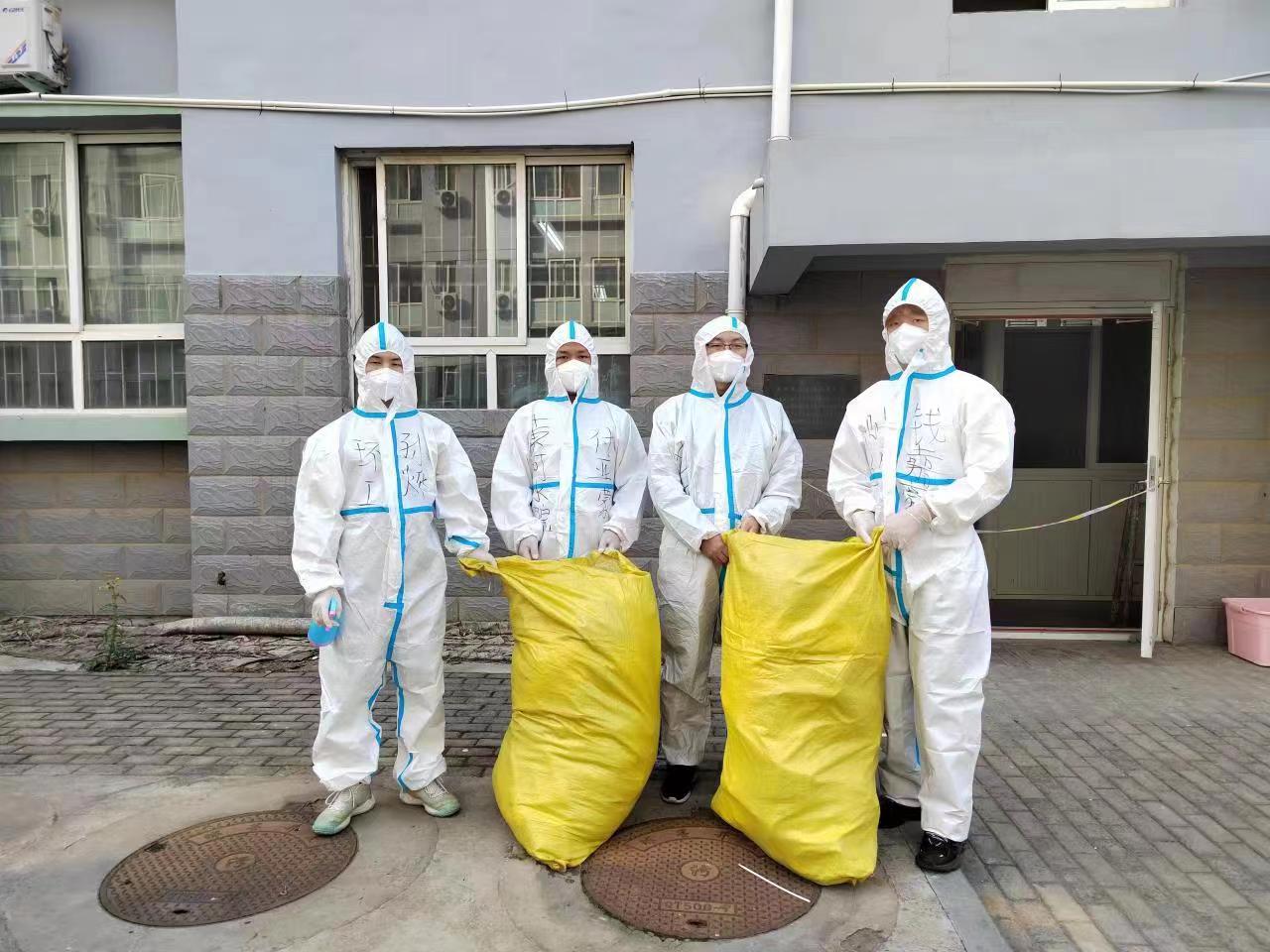疫情就是命令,防控就是责任。10月28日夜间,在面临校内隔离点疫情防控人员短缺的情况下,团委书记范龙和纪委老师付亚蒙主动请缨,成立留学生公寓隔离点突击小分队,测绘工程学院学生钱嘉豪、环境工程学院学生孙烨主动申请加入小分队。小分队以“守土有责、守土担责、守土尽责”的使命担当,全力奋战在抗疫最前线,承担起隔离人员安置、分发物资、无接触送餐、清理转运医疗废弃垃圾、宣传防疫政策、实时统计健康状况、安抚隔离人员情绪等繁重而琐碎的任务。