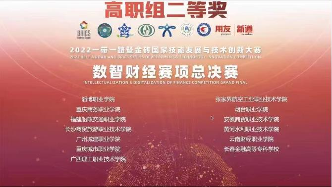 本次大赛由金砖国家工商理事会、一带一路暨金砖国家技能发展国际联盟等单位联合主办,由金砖国家工商理事会技能发展工作组、广东财经大学等单位联合承办。金融科技创新应用能力赛项共有来自全国190个学校代表队参赛,其中高职组有99所学校参赛,竞赛以金融科技业为背景,基于面向金融科技、金融服务、互联网金融、区块链工程、数据库技术等类型企业的核心岗位工作内容设计,包括职业素养、创新金融业务、数字金融应用三项竞赛内容;数智财经赛项共有来自全国170个学校代表队参赛,其中高职组有65所学校参赛,竞赛通过团队赛与个人赛相结合的方式,重点考查数智化技术知识、会计专业知识与技能,包括数智化财税技能、会计信息化技能、大数据会计三项竞赛内容。