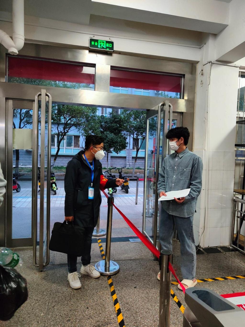 学院学工人员和骨干教师听令而行,10月24日下午学院党总支副书记陶攀、生态环境修复专业负责人黄帅博士、2022级辅导员王维宇返回学校,投入到疫情防控工作的第一线,全力保障我院学生的身心健康,确保教学、学生工作等有序稳定开展。他们以办公室为家、以沙发桌椅为床、简化一日三餐,克服困难、义无反顾的24小时全天候坚守在工作岗位、守护在同学们身边。他们第一时间细化宿舍管理网格,充分调动学生党员、干部队伍、宿舍长等有生力量,通过召开线上会议将组织核酸检测、公寓出入登记、掌握思想动态、了解学生困难诉求等工作,分工到人,确保第二天的各项疫情防控工作能够顺利开展。根据实际出现的问题调整工作方法、完善工作方案,切实做好疫情防控各项工作,守好环境工程学院疫情防控阵地。黄帅坚守8号实训馆,第一时间检查仪器设备运行情况、排查实训室安全风险点,确保我院实训室安全,同时也辅助做好学生工作。