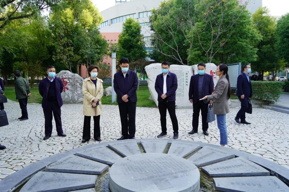 薛兆武一行先后参观了“足迹”文化景观、校内实训场馆和智慧校园服务大厅,对我校技能人才培养、实训基地建设、职业技能培训等方面取得的成绩给予高度评价。