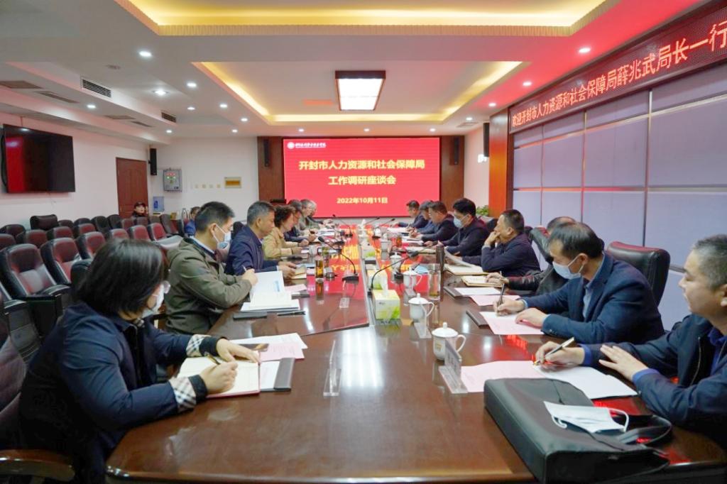 10月11日下午,开封市人力资源和社会保障局党组书记、局长、二级巡视员薛兆武一行到我校调研指导工作。校党委书记周保平,党委副书记、校长胡昊,副校长菅浩然及有关部门负责人陪同调研并深入座谈交流。调研座谈会由胡昊主持。