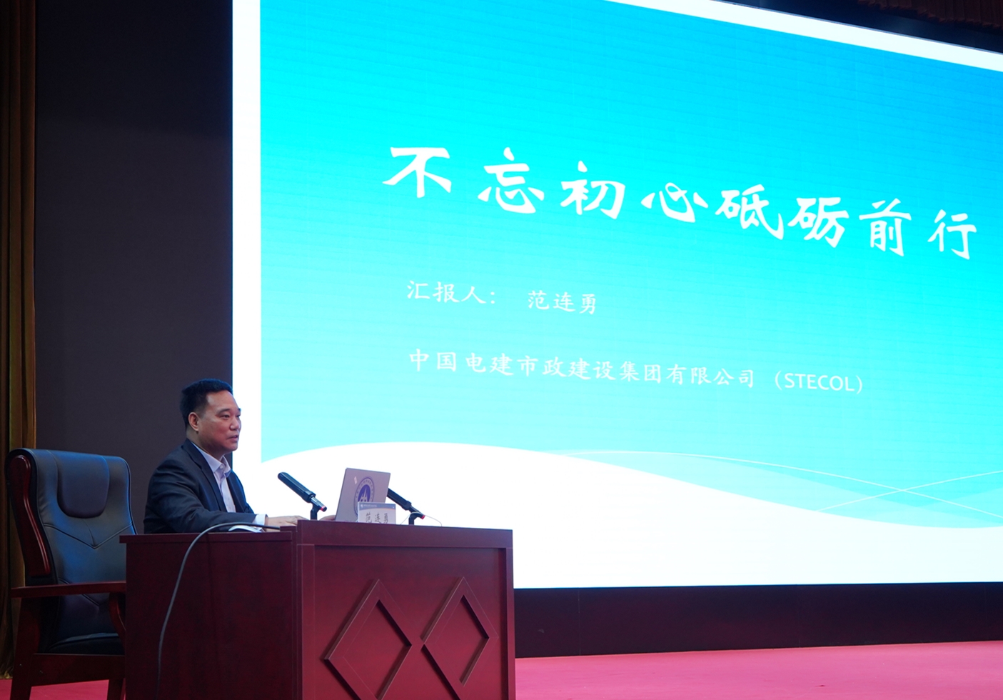 范连勇以“不忘初心 砥砺前行”为题, 从个人履历、政治导向、能力建设等方面介绍了自己从业30年来如何从一名基层技术人员到优秀国际项目经理,从天津市“五一劳动奖章”获得者到中央企业劳动模范,再到站上全国工人的最高领奖台。范连勇扎根基层、常驻海外,用一个个项目取得业主肯定和信任的历程赢得同学们阵阵掌声。他坚持党的领导,团结同志、善于学习、精益求精的精神使大家深受启迪,受益匪浅。