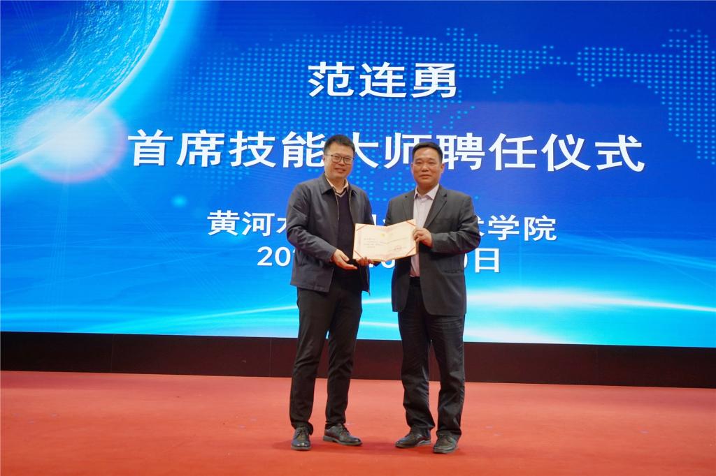 胡昊为范连勇颁发黄河水利职业技术学院首席技能大师证书